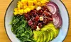 - Elige tus Toppings 1-4, entre: Aguacate, Mango, Wakame, Edamame, Mozzarella, Garbanzos, Guacamole, Pepino, Tomate Cherry, Zanahoria, Cebolla morada, Remolacha, Maíz, Jalapeño, Aceitunas Negras