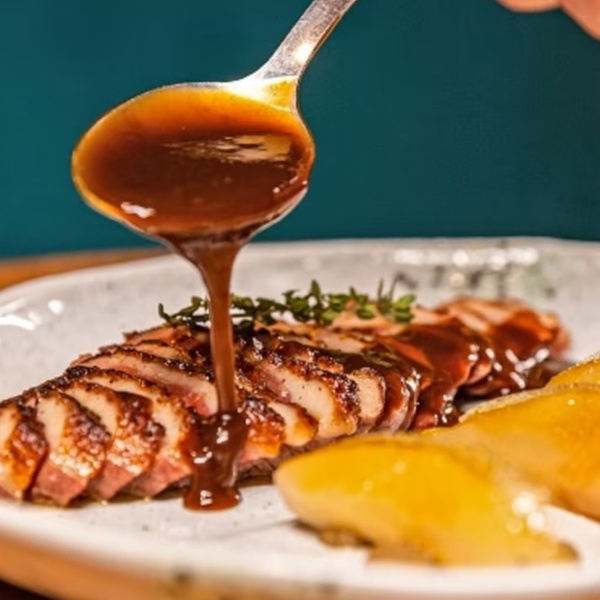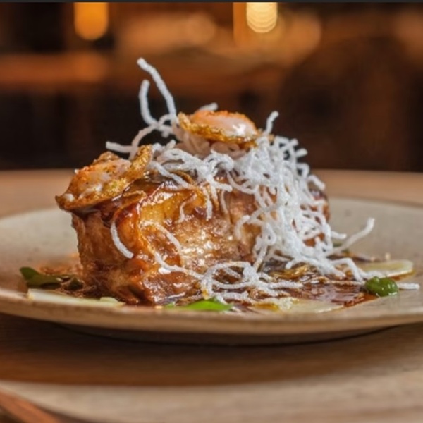 - Presa de cerdo ibérico, Crême Fresh y hoisin de ciruela con membrillo