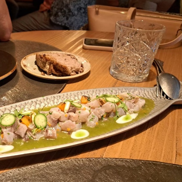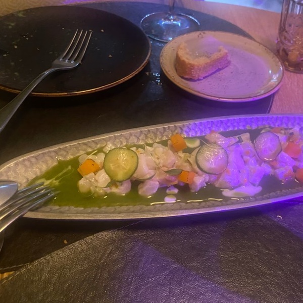 - Ceviche de corvina con leche de tigre de fruta de la pasión