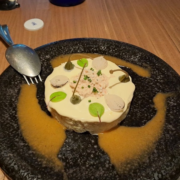 - Ensaladilla rusa de txangurro escabechado y ahumado con encurtidos