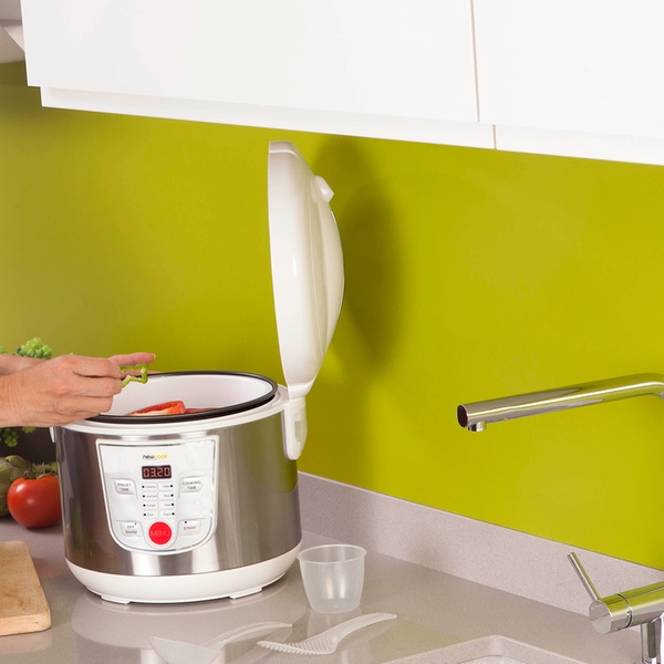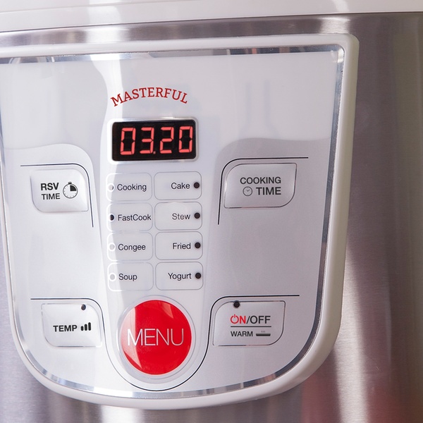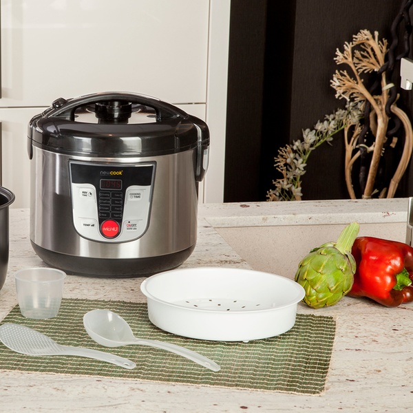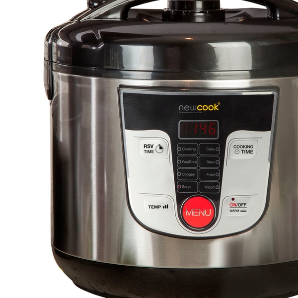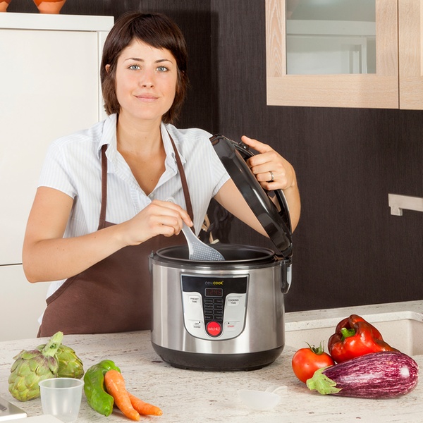 Robot de cocina programable con 24 horas de antelación; incluye 8 menús ajustables en tiempo, además de diferentes funciones de cocina
