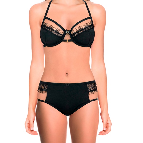 Color: Negro * Cierre trasero: Clip * Copa con forma * Tirantes regulables * Tela de encaje * Material: 35% algodón - 65% poliéster * Talla única