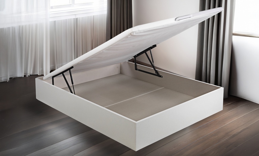 Este canapé abatible de madera de 32cm de altura combina un diseño elegante y funcional, con pistones hidráulicos para un acceso rápido al espacio de almacenaje