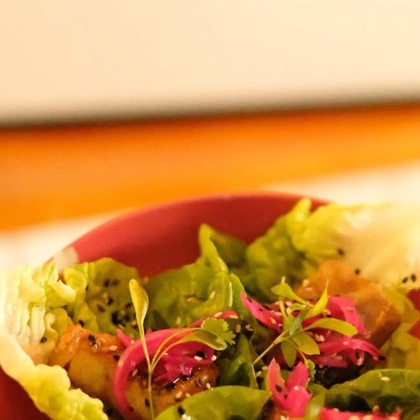 - Pork belly saam: cerdo a baja temperatura, hojas verdes