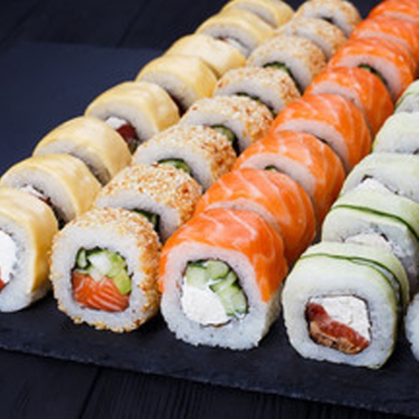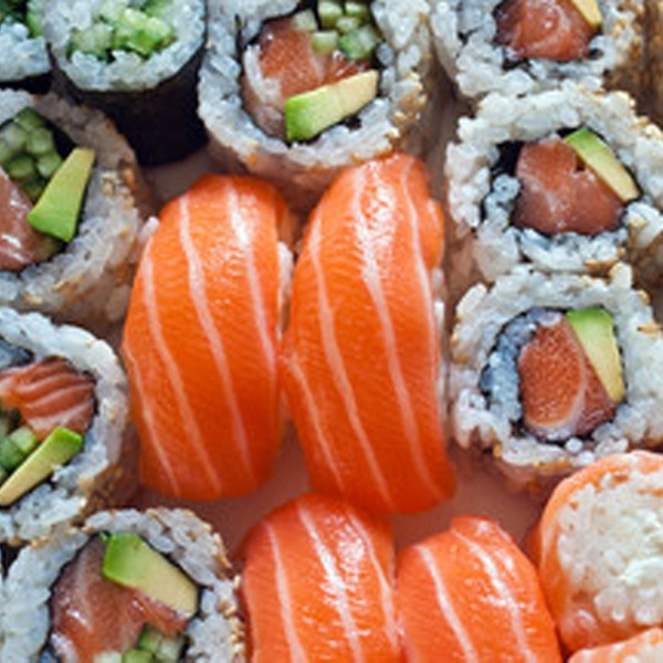 Incluye piezas de sushi como makis, California roll, niguiris y más