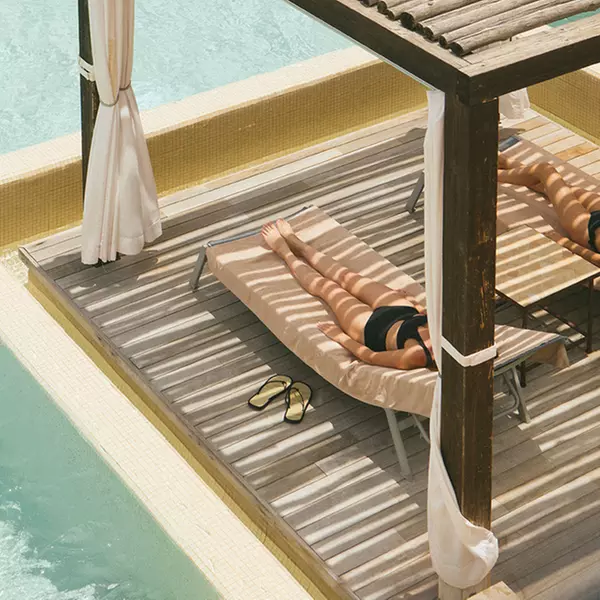 - Day pass en hotel para 2 personas con hamaca, sombrilla, toalla y 60 € de crédito para consumir en comida y bebida