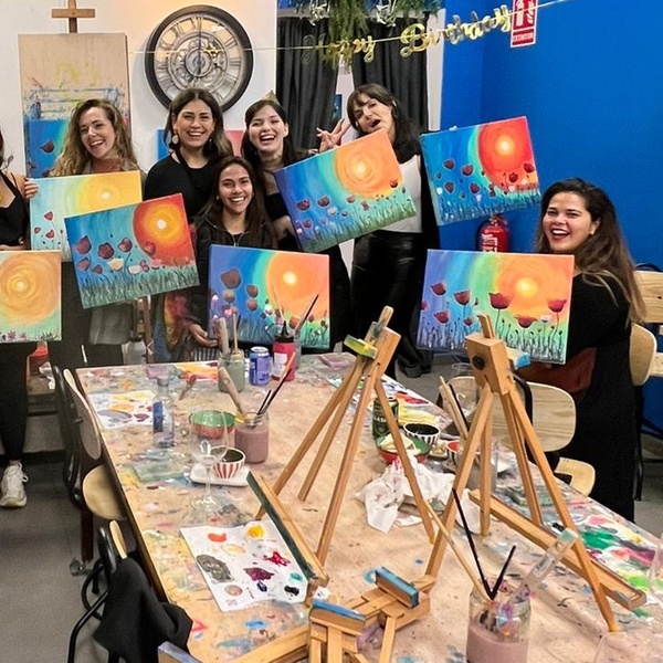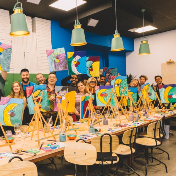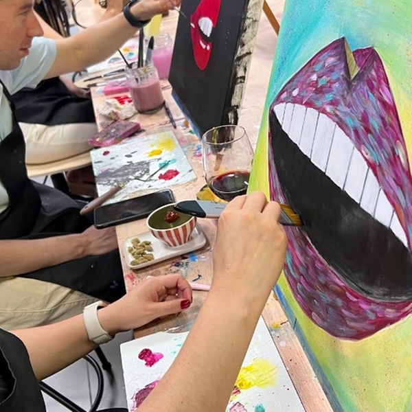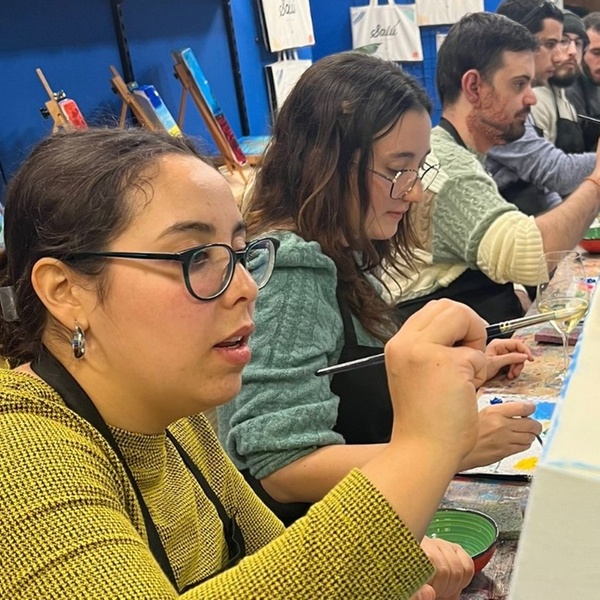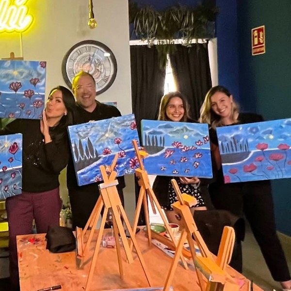 Todas las opciones incluyen 2 horas de taller de pintura o diseño creativo, vino ilimitado y una selección de picoteo para mantener la inspiración en lo más alto. Todo el material artístico está incluido para que cada participante solo tenga que dejarse llevar por la creatividad.