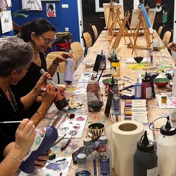 - Taller de 2 horas a elegir entre Bottle & Wine, Art & Wine y Tote bag & Wine