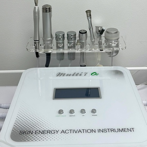 - Exfoliación profunda de cuello y rostro con microdermoabrasión con punta de diamante (cabezales intercambiables según el tipo y las necesidades de la piel)