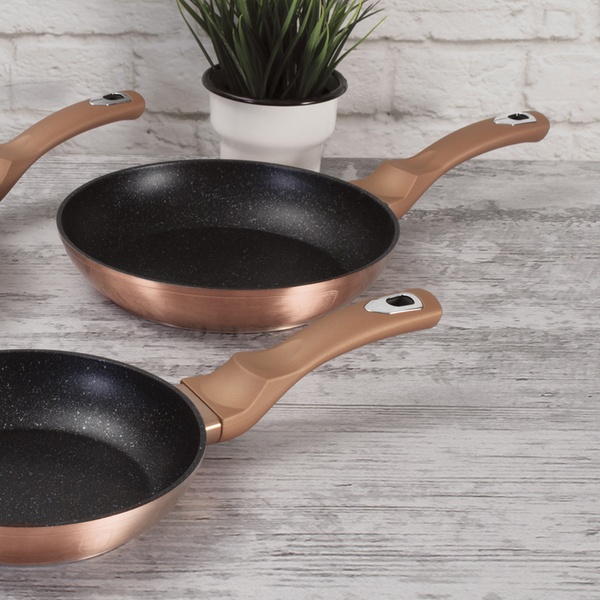 Juego de 2 o 3 sartenes con opción de sartén grill en color oro rosa, de granito de tres capas