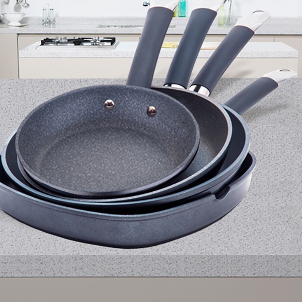 - Dimensiones de las sartenes: Ø14 x 3,5 cm, Ø20 x 4,5 cm y Ø24 x 5 cm