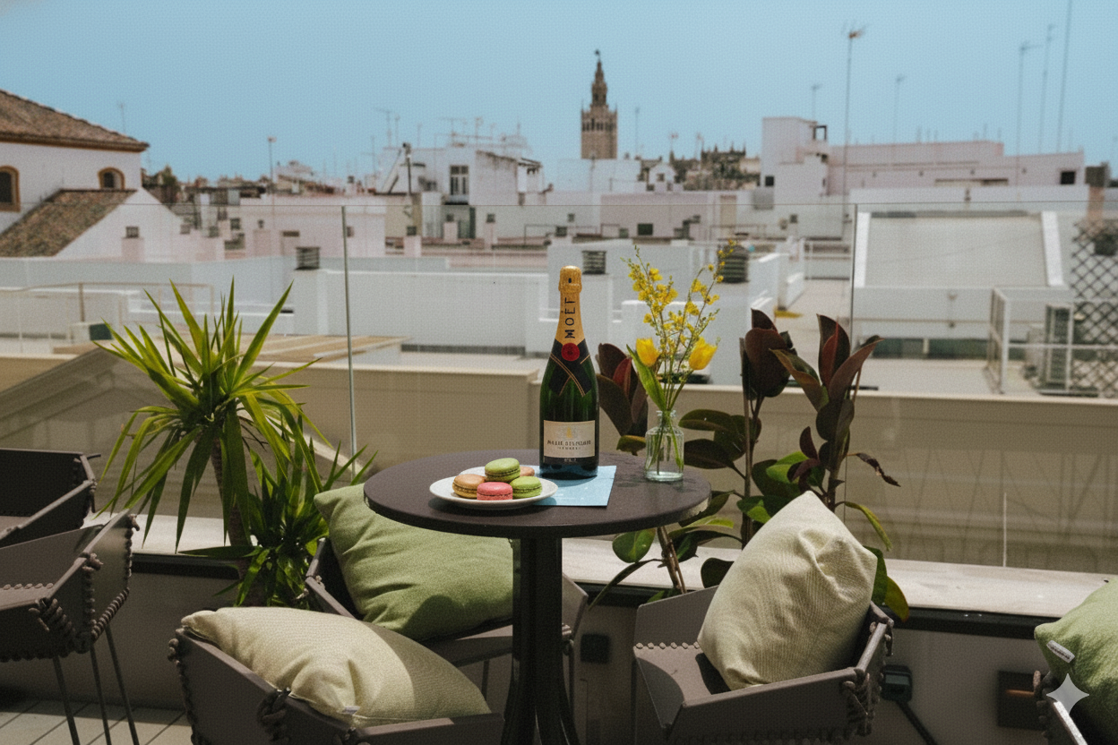 ¿Quién dijo que las terrazas son solo para mirar? Tú puedes elevar cualquier momento sobre los tejados de Sevilla.