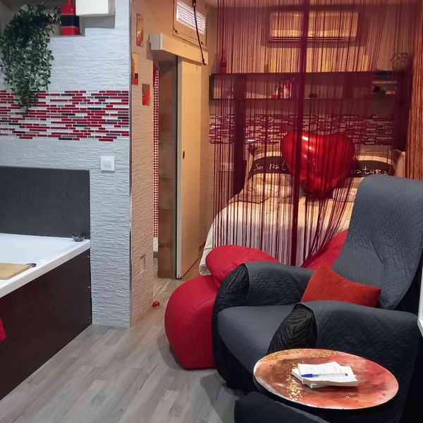 Ven a disfrutar de unas horas en pareja en este loft rojo con hidromasaje; ¡Ubrique te espera!