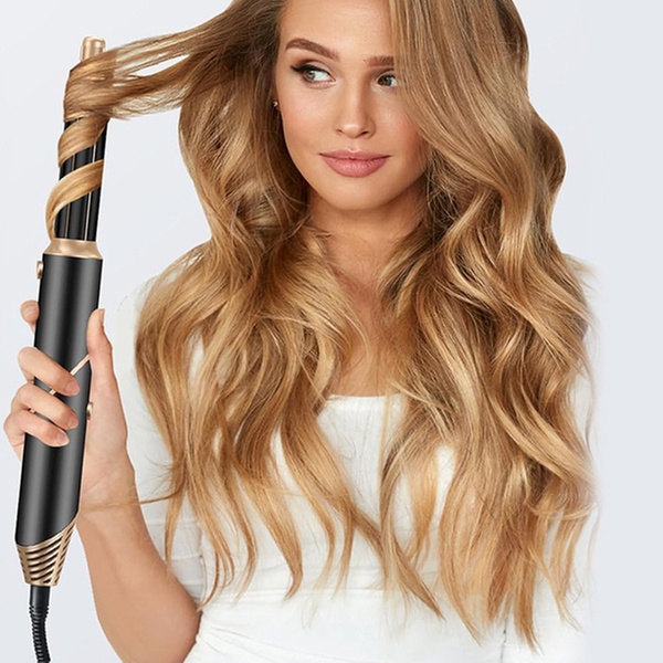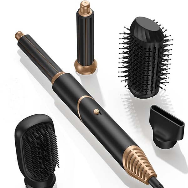 - Gracias a sus 6 accesorios intercambiables, esta herramienta versátil te permite secar, alisar, rizar, dar volumen y peinar tu cabello de manera rápida y sencilla