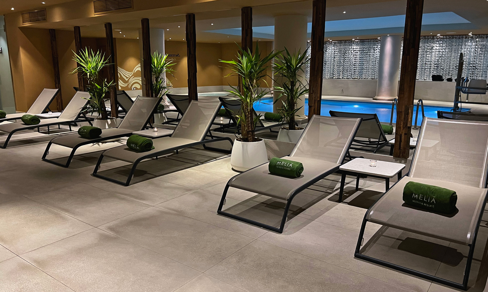 Imagina un refugio de relajación y bienestar en pleno corazón de Madrid... La zona wellness del prestigioso hotel Meliá Princesa ofrece una experiencia lujosa en un entorno de 5 estrellas, con acceso fácil desde la parada de metro Ventura Rodríguez. Este espacio exclusivo está dedicado a la estimulación de los sentidos y el descanso absoluto, combinando un circuito de aguas con una variedad de masajes y tratamientos faciales y corporales adicionales. Cada instalación ofrece ambientes únicos de desconexión, para que sus visitantes se relajen y se olviden de las preocupaciones. Yo ya me estoy imaginando en una de estas tumbonas: