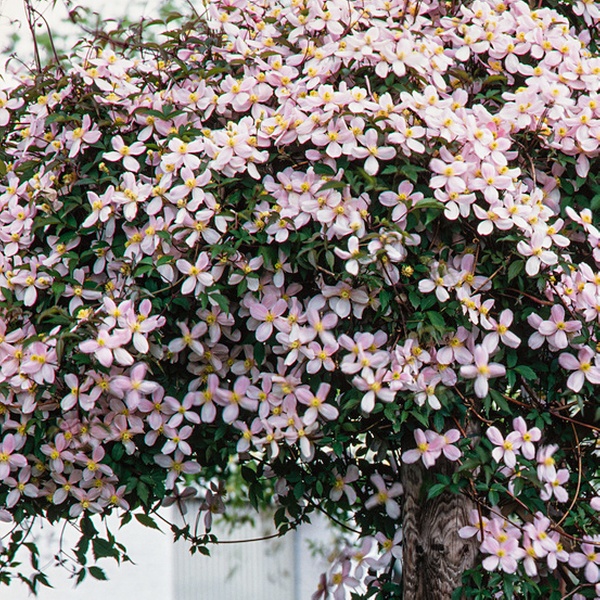 - 2 x Clematis montana 'Rubens': clemátide con flores rosas que aporta un ambiente romántico al jardín.