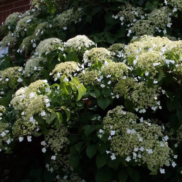 - 2 x Hydrangea petiolaris: hortensia trepadora con flores blancas que crece en altura de manera elegante.