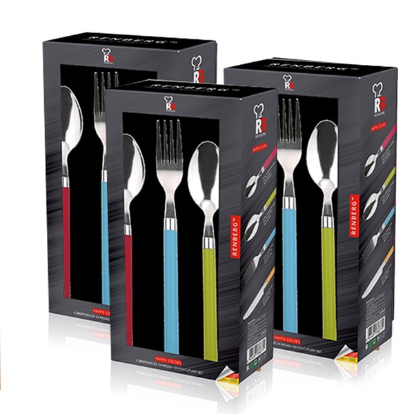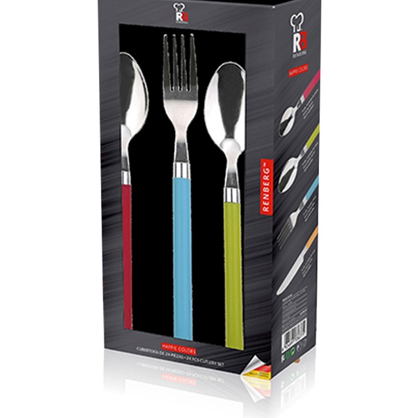 - Opción Q4114: pack de 24 cubiertos con mango de acero inoxidable multicolor
