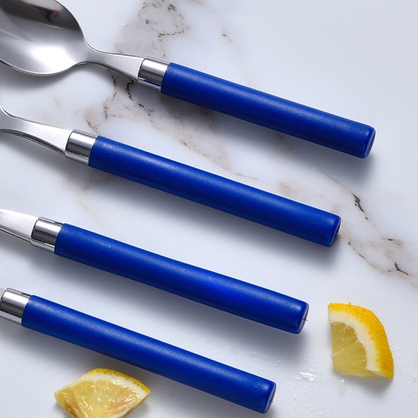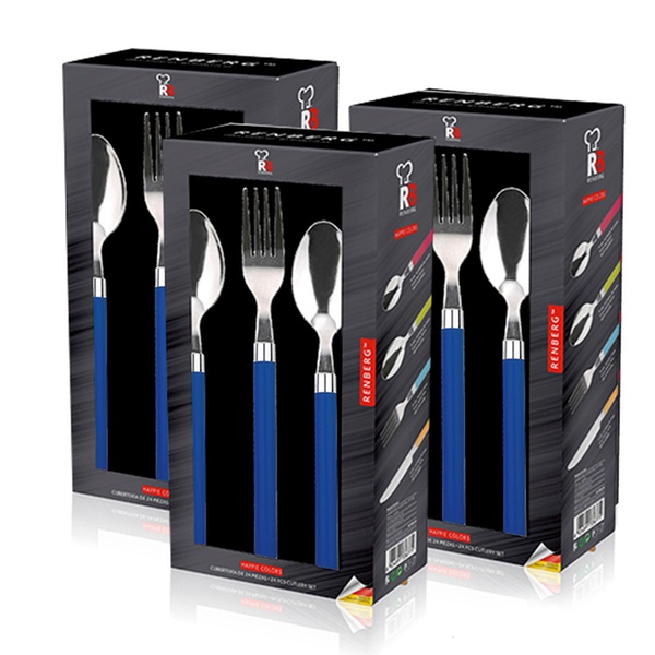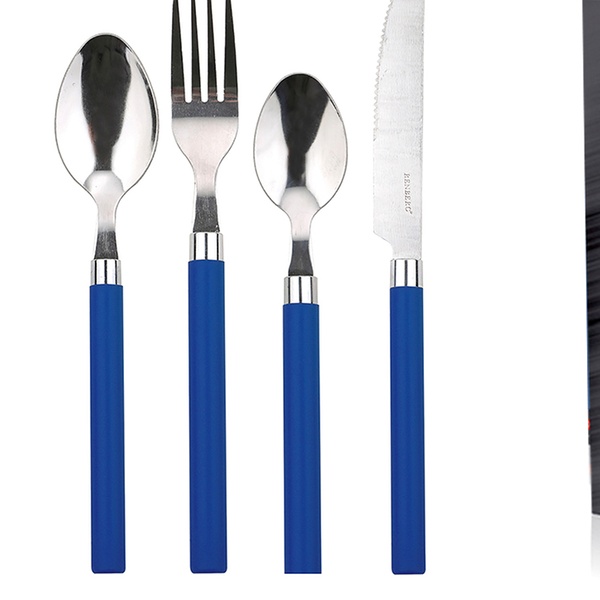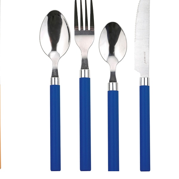 - Opción Q4113: pack de 24 piezas cubiertos acero inoxidable con mango azul