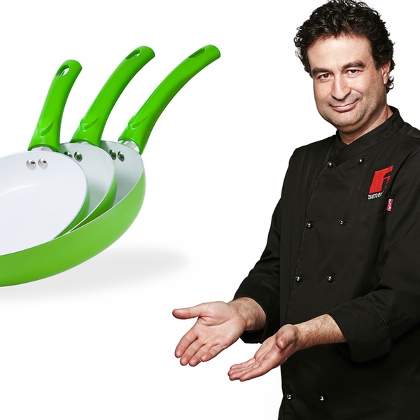 Disponible en dos colores, juego de sartenes apto para todo tipo de cocina gas, eléctrica, inducción y vitrocerámica