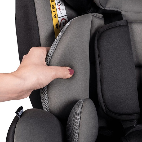Esta silla para automóvil cuenta con un respaldo y un reposacabezas ajustables, así como una capota integrada que protege al niño de la luz