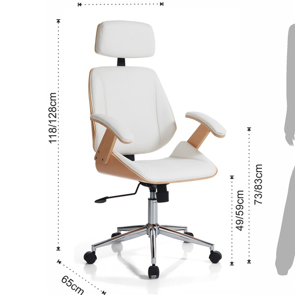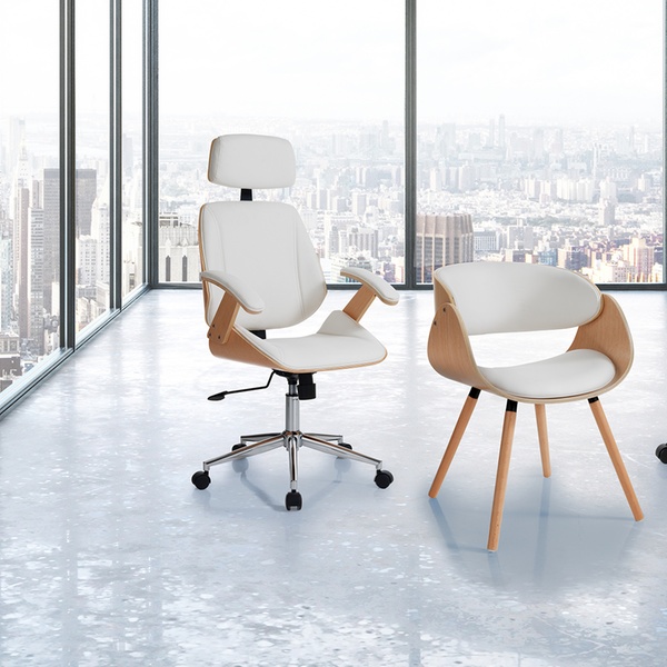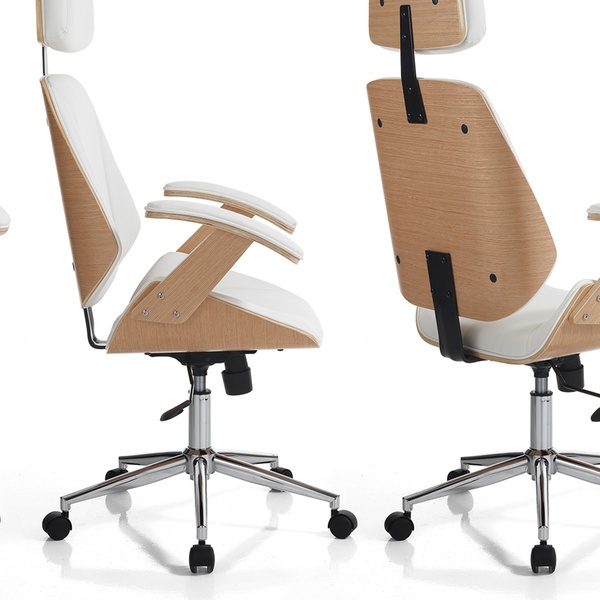 Silla de oficina decorativa y funcional, con asiento de cuero sintético en color blanco