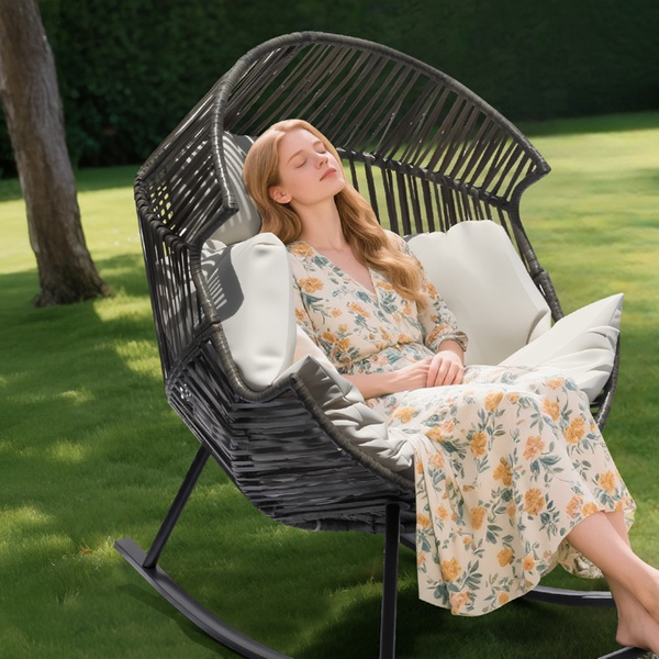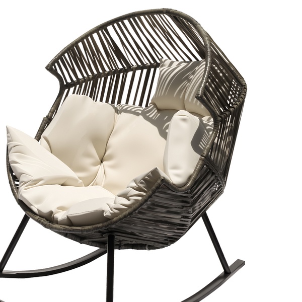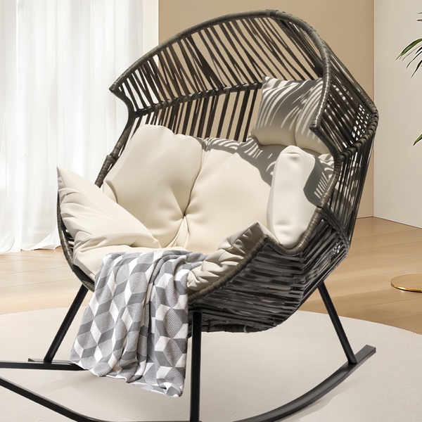Con un diseño ergonómico en forma de huevo, esta silla mecedora ofrece un buen soporte y una comodidad inigualable