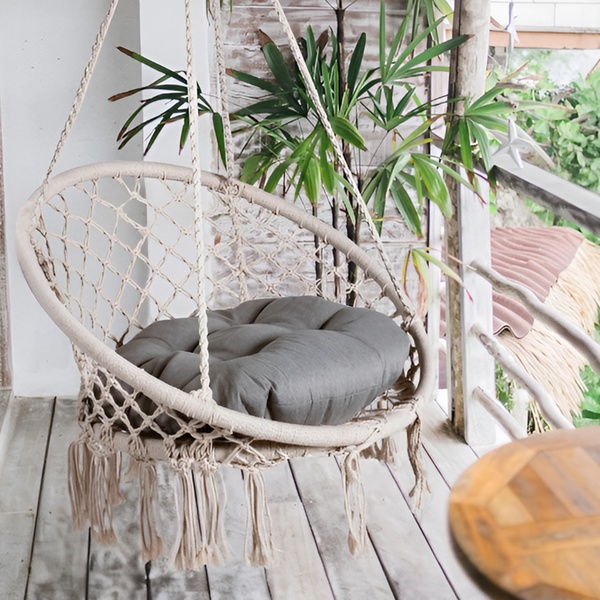 Con un diseño boho chic, esta silla ofrece un lugar tranquilo para relajarse, leer, escuchar música o simplemente disfrutar del momento