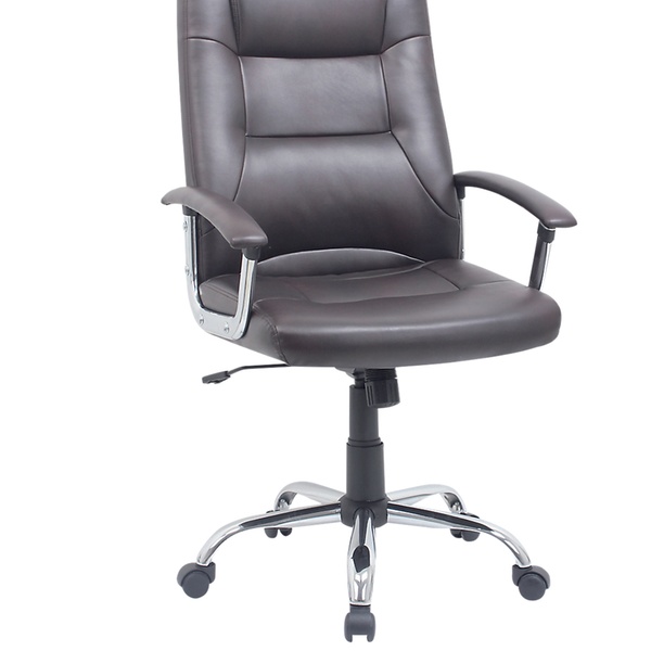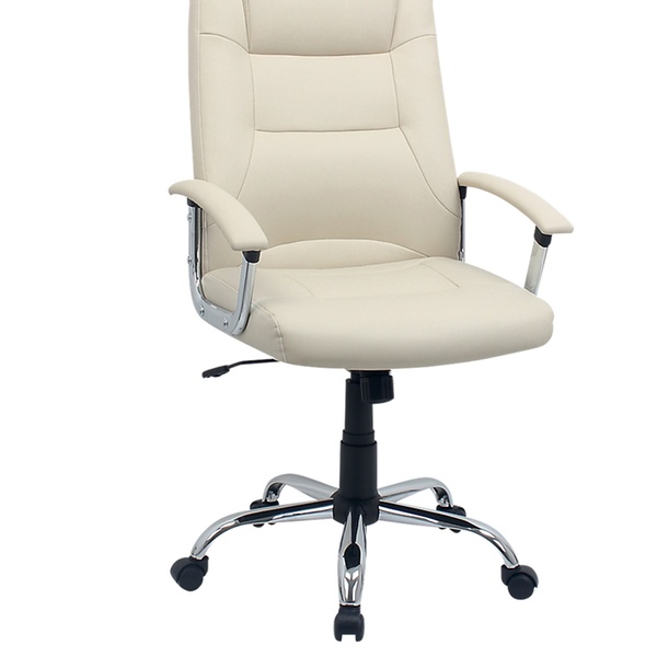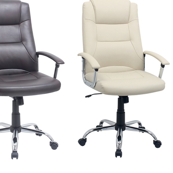 Con reposabrazos, un cómodo soporte para el cuello, respaldo alto y base estilo estrella, cromada y ruedas de frenado