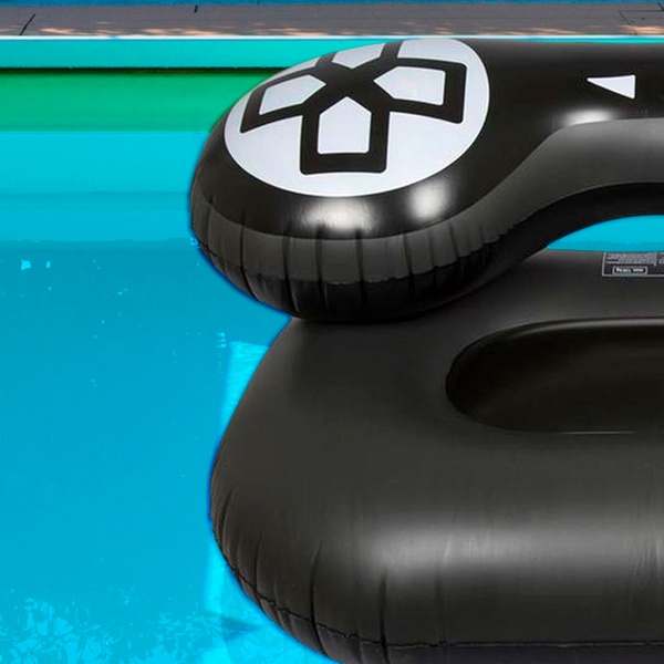 Sillón inflable en forma de mando de videojuegos ideal para usar en piscinas