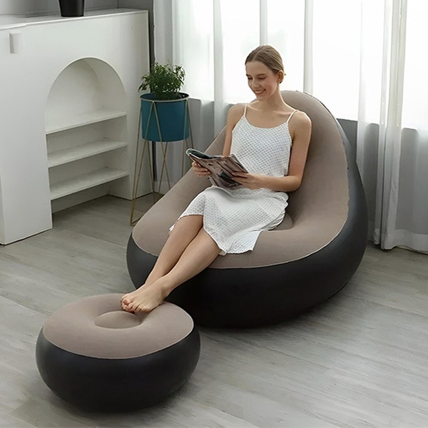 - Relájate con estilo dondequiera que estés con el sillón inflable con reposapiés, perfecto para interiores y exteriores.