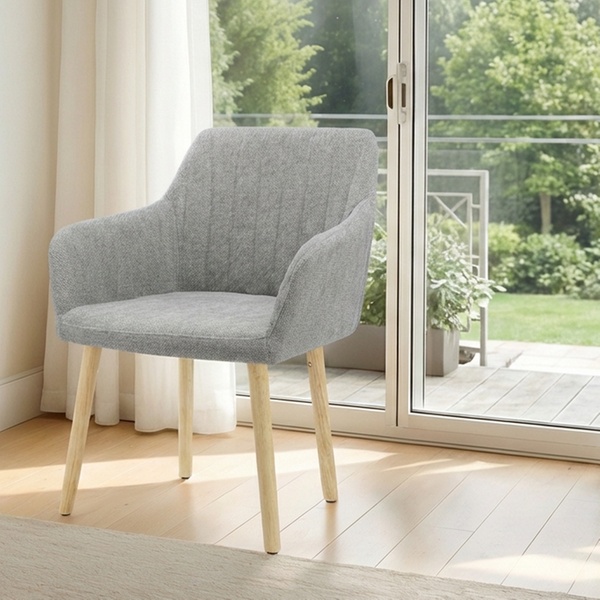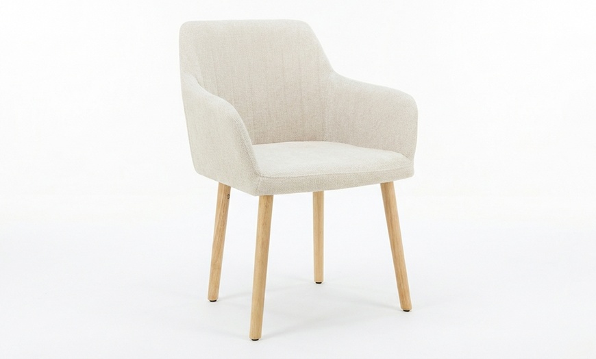Groupon ofrece este sillón tapizado de estilo escandinavo con patas de madera natural, vendido por Il Gruppone SRL