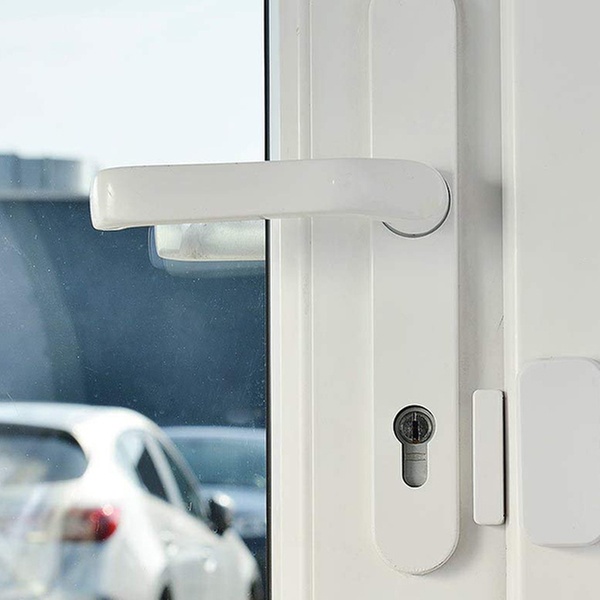 - Sensor de puerta o ventana con batería A23 de 12 V y bajo consumo de 30 mW.