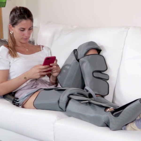 Los dispositivos colocados en las piernas se comprimen y expanden en un bombeo que activa y mejora la circulación sanguínea y linfática