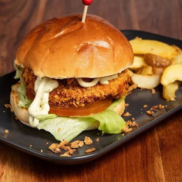 - Hamburguesa de pollo: con queso, cebolla crispy, tomate y lechuga