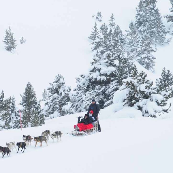 - Excursión en trineo de perros al refugio de Montgarri con comida