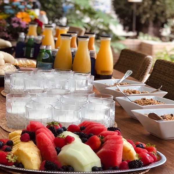 - Coffee Break Completo: cafés, tés e infusiones, selección de lácteos, agua natural y con gas bajo pedido, galletitas, zumos o smoothies, mini pastelería danesa y francesa.