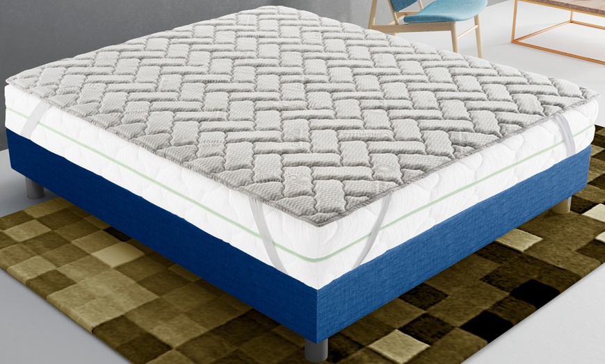 Groupon ofrece este sobrecolchón de espuma de memoria con tejido de manzanilla, vendido por Etracom Srl