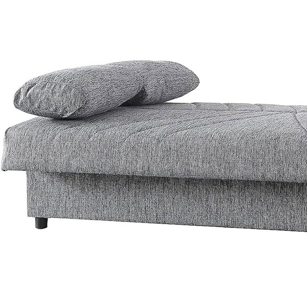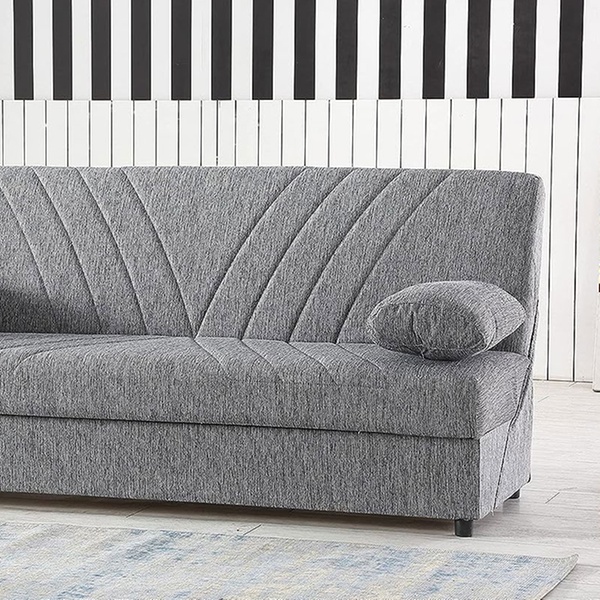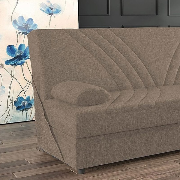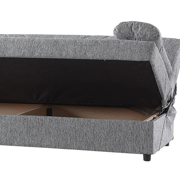 Este práctico sofá cama es una solución cómoda para amueblar cualquier espacio de vida con su diseño moderno y su contenedor que ahorra espacio