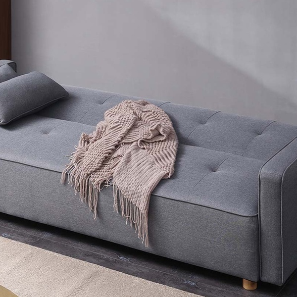 Este sofá de 3 plazas es muy fácil de combinar con estilos nórdicos gracias a su color gris y se convierte en cama para las visitas