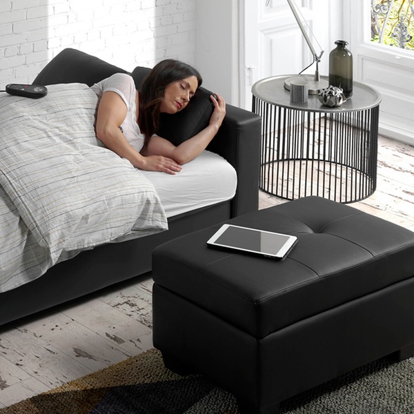 Sofá cama de masaje con otomana y 8 vibromotores de alto rendimiento que permiten masajear y relajar cuello, espalda, riñones y piernas