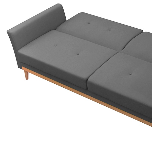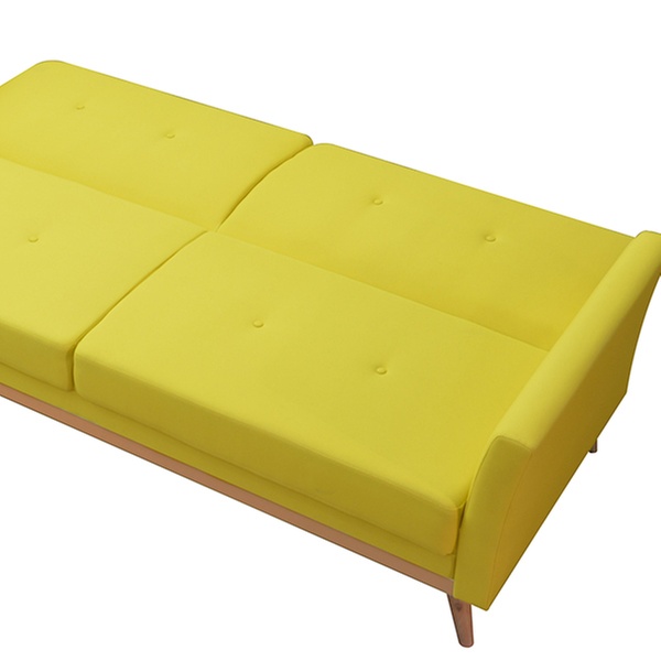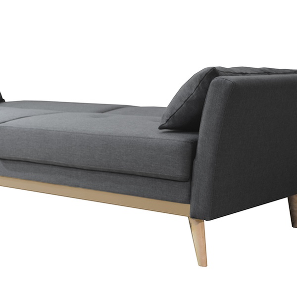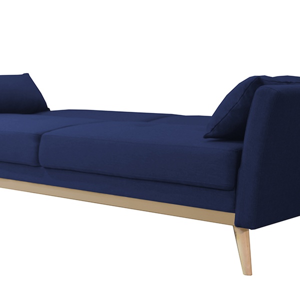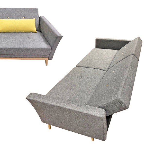 Sofá de mecanismo click clack, cama supletoria y práctica, y viene acompañado de dos cojines desenfundables