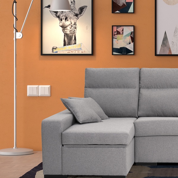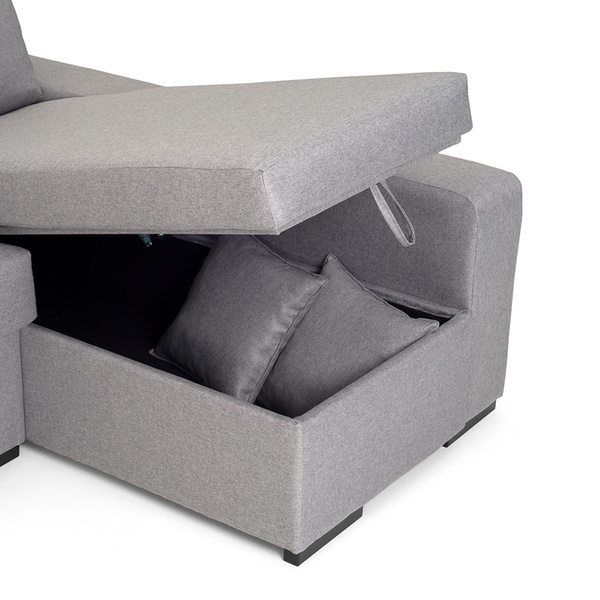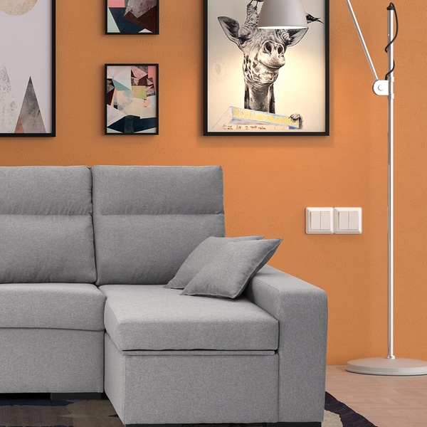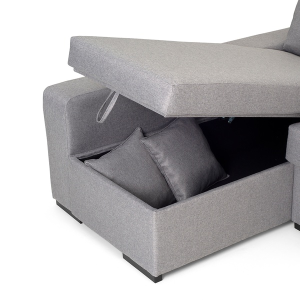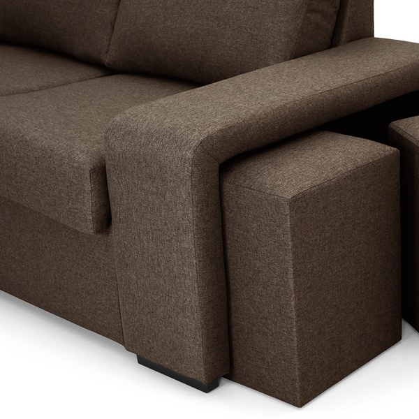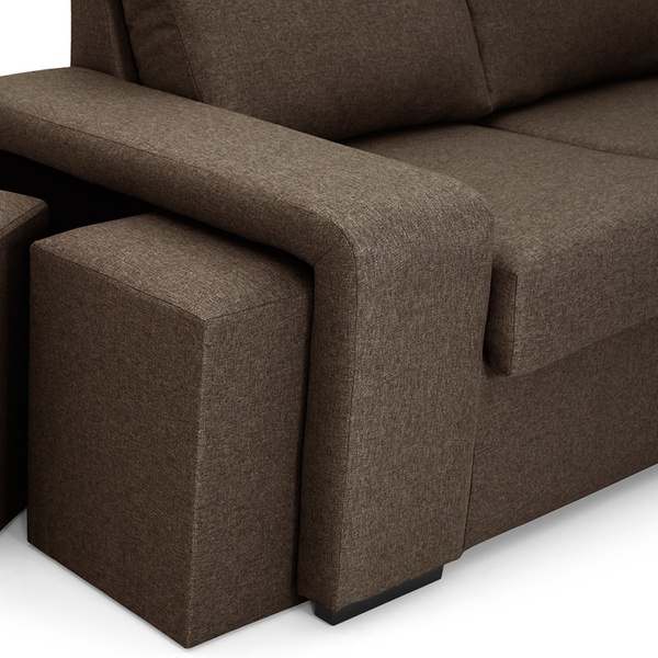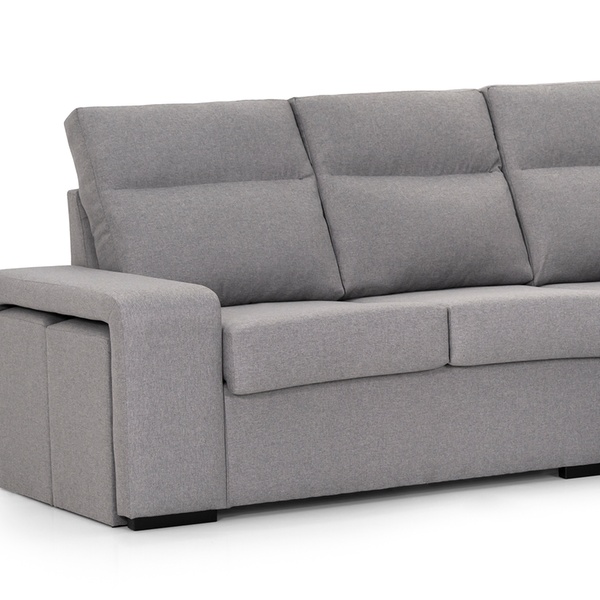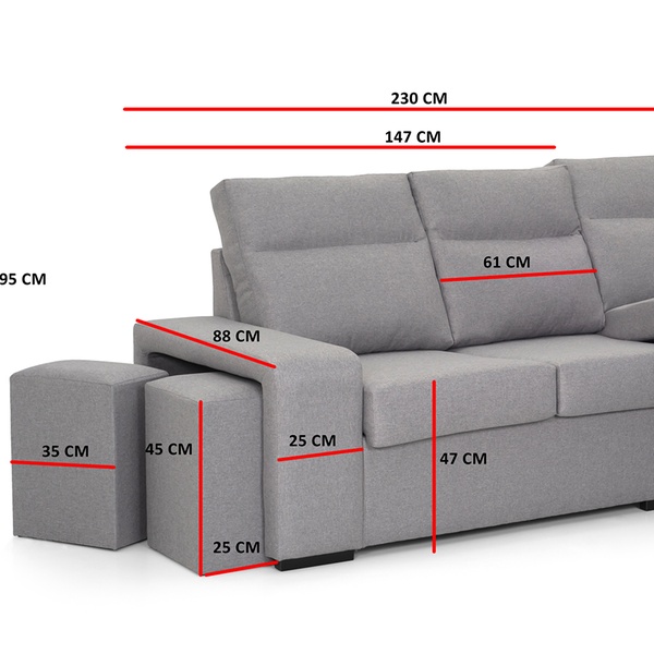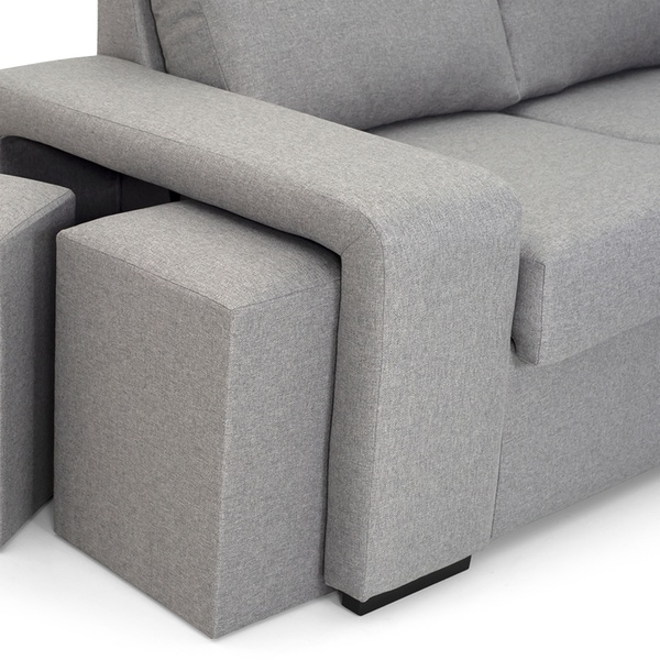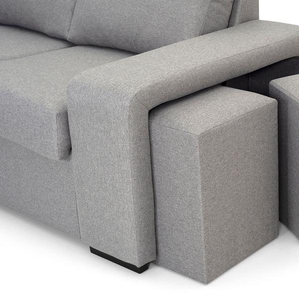 - Complementos: 2 cojines de adorno y 2 pufs en el brazo corto