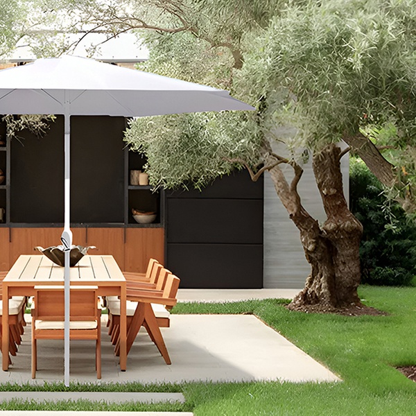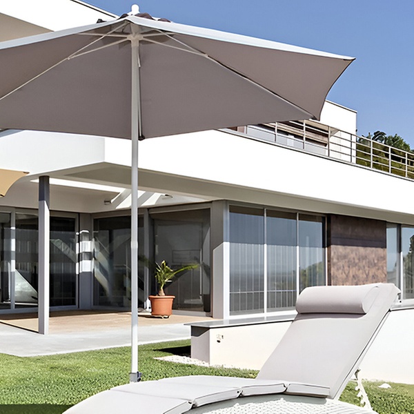 Con un elegante diseño blanco, esta sombrilla de 3 m ofrece sombra y estilo, perfecta para jardines y terrazas