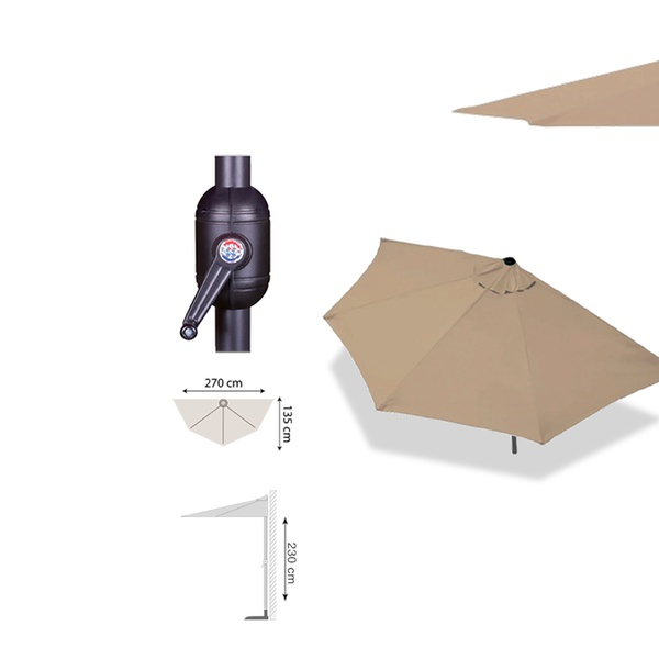 - Manivela de fácil uso en el mástil de acero que facilita la subida y bajada del toldo