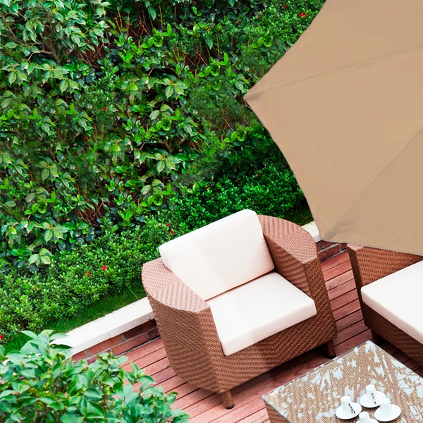 Groupon ofrece esta sombrilla semicircular para exteriores, vendida por ASIA GLOBAL DAIMPORT S.L