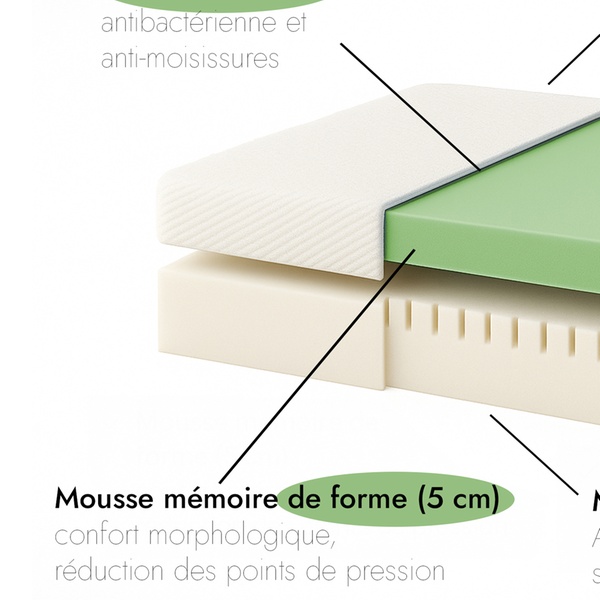 - 5 cm de espuma viscoelástica (corte especial para cama de relax)