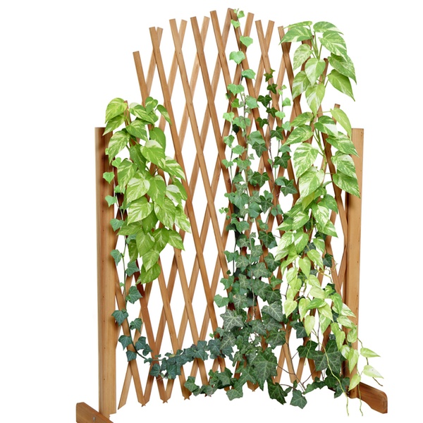 Soporte de madera para ayudar las plantas trepadoras a crecer, dándole un toque diferente a la fachada de la casa