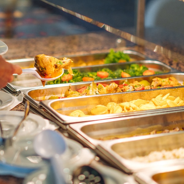 Completa tu día con un buen almuerzo buffet con delicias como ensaladas naturales, platos preparados calientes y fríos, sopas, pastas, embutidos, quesos, variedad de panes, carnes y pescados variados en función del día, patatas, guarniciones, arroces o pizzas.