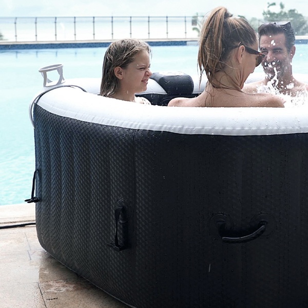 - Disponible en versión cuadrada 4 plazas (110 jets) color negro y redonda 6 plazas (130 jets) color azul